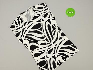 Bluzka damska S.Ol Design, rozmiar 46 - Krój: z krótkim rękawem, kołnierzyk z dekoltem w serek - Wzór: duże kwiaty i liście w odcieniach beżu i szarości na białym tle - Materiał: 92% wiskoza, 8% e...