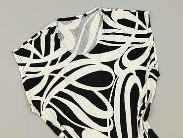 Koszulka damska z krótkim rękawem, czarno‑biała w wyrazisty, abstrakcyjny wzór.