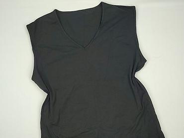 Czarna damska koszulka bez rękawów / top - Fason: klasyczny tank top z szerokimi ramiączkami, półokrągły dekolt, lekko zaokrąglony dół - Tył: głębsze wycięcie - Materiał: 95% wiskoza, 5% elastan –...