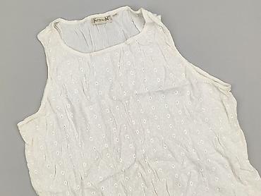 Biała damska bluzka bez rękawów z miękkiej, przewiewnej dzianiny bawełnianej. - Materiał: 100% bawełna (na metce) - Kolor: biały - Krój: luźny, lekko pudełkowy, długość do talii - Rękawy: krótkie ...