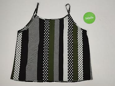 Bluzka damska z krótkim rękawem, rozmiar z metki: 50. - Fason: luźny, z wiązaniem przy dekolcie w kształcie V (długie troczki do zawiązania kokardy lub pozostawienia luźno). - Wzór: geometryczny,...