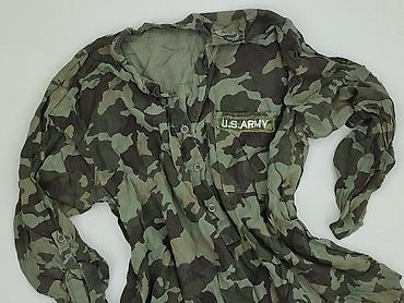 Idealna do stylizacji casual i streetwear, sprawdzi się jako narzutka lub koszula do jeansów i botków. Kolorystyka moro w odcieniach zieleni, khaki i czerni. Dla kobiet. Używana.