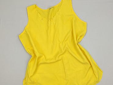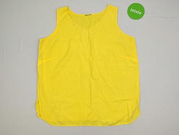 Żółta bluzka damska bez rękawów - Rozmiar z metki: 38 - Krój: luźny, lekko zaokrąglony dół, przedłużony tył, delikatnie opadające ramiona (cap sleeves) - Dekolt: w kształcie litery V - Materiał: c...