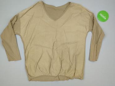 Bluzka damska oversize w kolorze beżowym. - Krój: luźny, nietoperzowe rękawy, ściągacz na dole, dekolt w serek (V-neck) - Materiał: miękka, elastyczna dzianina bawełniana z domieszką (przyjemna w ...