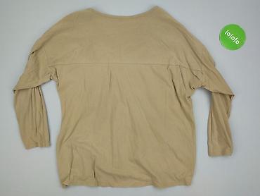 Bluzka damska, beżowa, z długim rękawem. - Krój: luźny, prosty, z opuszczoną linią ramion; rękawy zakończone lekkim ściągnięciem przy mankiecie. - Dekolt: okrągły. - Tkanina: cienka, zwiewna, z de...