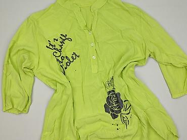 Bluzka damska XXL, jasnozielona (limonkowa), zapinana na guziki. - Fason: luźny, krótki rękaw - Kołnierzyk: ozdobny, z haftem roślinnym i ażurowymi wycięciami - Materiał: 50% poliester, 50% wiskoz...