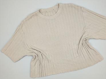 Bluzka damska z długim rękawem, w paski - Krój: luźny, prosty, z dekoltem w kształcie litery V - Rękawy: długie - Wzór: poziome paski w kolorze beżowym na białym tle - Materiał: dzianina miękka i ...