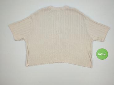 Bluzka damska z krótkim rękawem, beżowa/ecru, prążkowana. - Krój: prosty, z okrągłym dekoltem - Rękaw: krótki, swobodny - Wzór/materiał: delikatne pionowe prążki (rib), miękki i elastyczny dzianin...