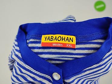 Bluzka damska w paski, rozmiar XL - Krój: luźna, koszulowa bluzka z długim rękawem - Dekolt: stójka (kołnierzyk mandaryński) z częściową listwą guzikową z przodu - Wzór: pionowe niebiesko-białe pa...