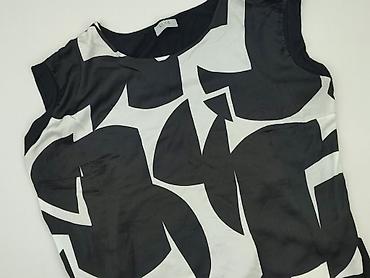 Damska bluzka bez rękawów z geometrycznym panelem kolorystycznym - Krój: luźniejszy, bez rękawów, z okrągłym dekoltem - Przód: połączenie trzech kolorów w układzie diagonalnym – czarny, srebrzysty...
