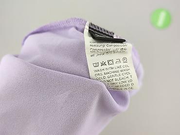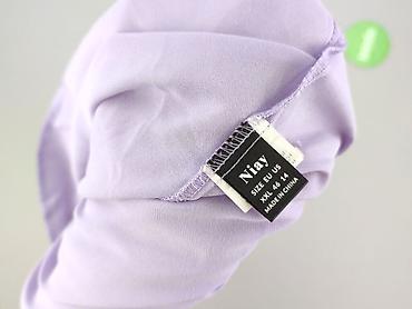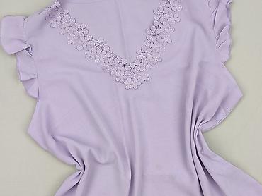 Bluzka damska w kolorze lawendowym - Krój: luźny, prosty, lekko dłuższy, z krótkim rękawem - Dekolt: szeroki, zaokrąglony - Ozdoby: marszczenie pod dekoltem z rzędem dekoracyjnych perełek - Materi...