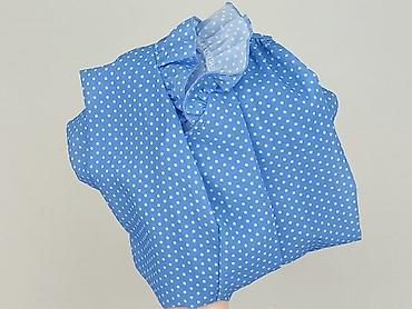 Bluzka damska w grochy - Krój: luźny, lekko taliowany, z krótkim rękawem - Dekolt: okrągły z małą kokardką z przodu - Rękawy: krótkie, delikatnie marszczone, z karczkiem z drobnymi zakładkami/szmi...