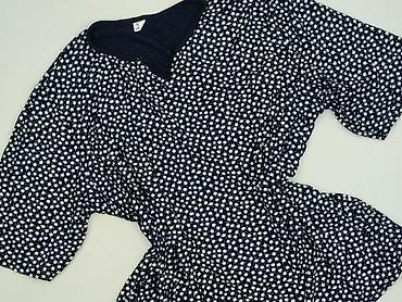 Bluzka damska w kwiaty - Krój: luźny, prosty, z krótkim rękawem - Dekolt: okrągły - Kolorystyka: granatowa baza, drobny kwiatowy wzór w odcieniach bieli, ecru, różu i fioletu - Materiał: 85% baweł...
