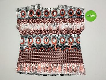 Damska bluzka z krótkim rękawem, we wzór etniczny/geometryczny - Krój: luźny, prosty, z lekkim wiązaniem/przedłużeniem przy dole po boku - Dekolt: okrągły - Rękaw: krótki - Kolorystyka: ecru/śmiet...