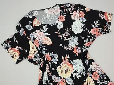 Bluzka damska w kwiaty - Krój: luźny, z krótkim rękawem - Dekolt: w kształcie litery V z marszczeniem na środku, subtelnie podkreśla biust i talię - Wzór: gęsty, wielobarwny nadruk kwiatowy na cza...