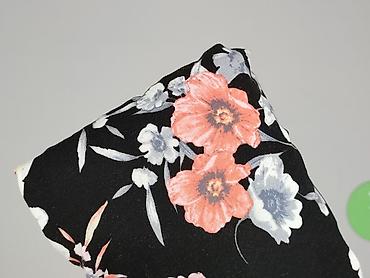 - Wzór: gęsty, kwiatowy print na czarnym tle (odcienie koralowego, żółtego, bieli i szarości)
