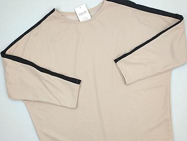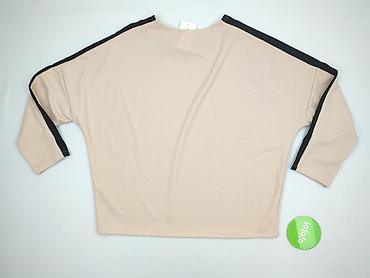 Beżowa bluzka damska oversize - Krój: luźny, pudełkowy, bez klasycznych rękawów (opadające ramiona) - Dekolt: okrągły, wykończony jasną lamówką - Rozmiar z metki: XXL - Materiał: 100% poliester – ...