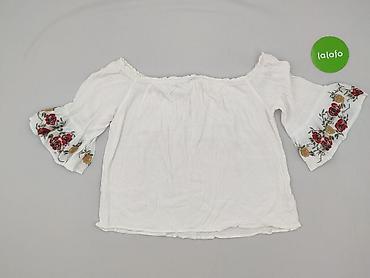 Biała bluzka damska z haftem kwiatowym - Rozmiar: XXL (na metce) - Krój: luźny, z delikatnym odcięciem i marszczeniem poniżej linii talii, lekko rozkloszowany dół - Rękawy: 3/4 - Dekolt: okrągły -...
