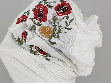 Bluzka damska off-shoulder, biała - Krój: lekko rozszerzana, z odkrytymi ramionami (cold shoulder) i krótkimi, luźnymi rękawami. - Dekor: aplikacje kwiatowe z perełkami naszyte w linii odcięcia po...
