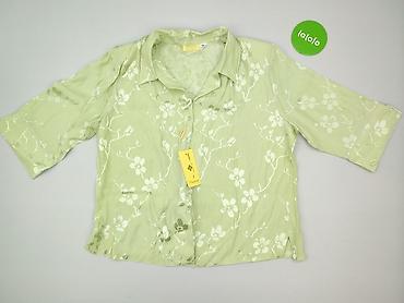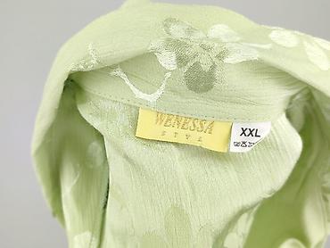 Bluzka damska XXL, jasnozielona (limonkowa), zapinana na guziki. - Fason: luźny, krótki rękaw - Kołnierzyk: ozdobny, z haftem roślinnym i ażurowymi wycięciami - Materiał: 50% poliester, 50% wiskoz...