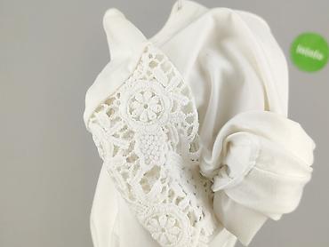 Biała, lekka bluzka damska z haftem angielskim w kwiaty. - Materiał: przewiewna tkanina z ażurowym, kwiatowym haftem (delikatnie półprzezroczysta). - Krój: luźny, prosty; opuszczone ramiona, krót...Rozmiar: