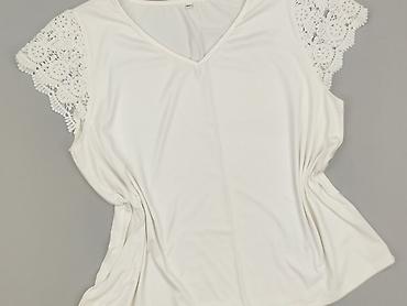 Biała damska bluzka koronkowa, rozmiar 2XL - Krój: luźny T-shirt z dekoltem V - Rękawy: krótkie, wykończone koronką - Materiał: 95% poliester, 5% elastan – miękki, elastyczny i przewiewny - Wzór: ...