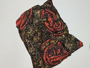- Wzór: całościowy nadruk w odcieniach czerni, oliwki i rdzawej czerwieni z dekoracyjnymi, okrągłymi motywami