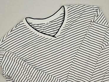 Bluzka damska z długim rękawem, w paski - Krój: luźny, prosty, z dekoltem w kształcie litery V - Rękawy: długie - Wzór: poziome paski w kolorze beżowym na białym tle - Materiał: dzianina miękka i ...