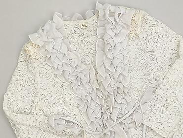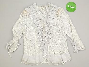 Ażurowa biała bluzka damska z długim rękawem - Rozmiar: XXL (z metki) - Materiał: 100% poliester - Fason: lekko luźny, z falbanką przy stójce - Zapięcie: przód przygotowany pod listwę guzikową/pli...