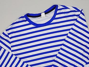 Bluzka damska w paski, rozmiar XL - Fason: luźny, prosty krój z opuszczonym rękawkiem typu cap - Dekolt: okrągły - Wzór: granatowo-białe, drobne poziome paski - Kolorystyka: górna część gładka bia...