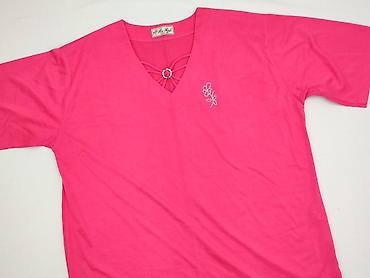 Bluzka damska M&H New Collection, rozmiar z metki XL/XXL. - Kolor: różowy - Fason: prosta bluzka z krótkim rękawem - Przód i rękawy z ażurowej koronki w kwiatowy wzór; dół wykończony ozdobną falą ...