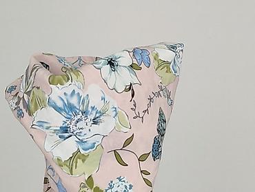 - Wzór: kwiaty i motyle na pudrowo‑różowym tle; odcienie błękitu, bieli, zieleni i czerni