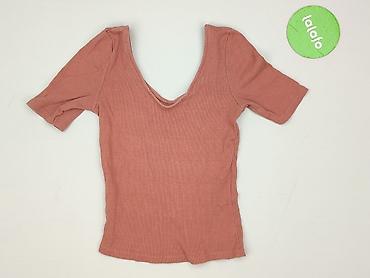 - Model: dzianinowa, prążkowana bluzka z dekoltem w kształcie litery V (przód i tył w podobnym, głębszym wycięciu)