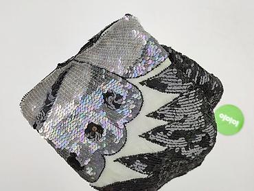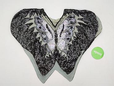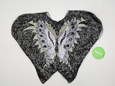 - Dwustronny motyw motyla: centralna aplikacja z iryzujących, srebrzystych cekinów, tło w odcieniach czerni i szarości, gęsto wyszywane koralikami i cekinami.