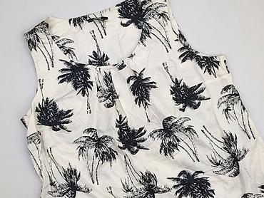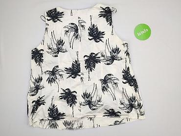 Bluzka damska C&A - Marka: C&A - Rozmiar: EU 48 (FR 50) - Krój: bez rękawów, falbanki na ramionach - Dekolt: okrągły, z zapięciem na mały guzik z tyłu - Wzór: czarno-białe drobne kwiaty na jasnym ...