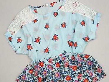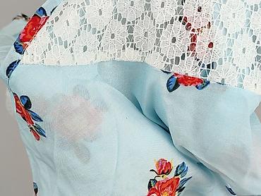 Bluzka damska, niebieska - Fason: luźny T‑shirt/tunika z krótkim rękawem - Dekolt: szeroki, z marszczeniem i elastyczną, karczkową gumką - Zapięcie: krótka listwa z trzema białymi guziczkami z prz...