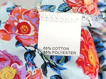 - Kolor: jasny błękit z kwiatowym nadrukiem (róże w odcieniach czerwieni, różu i pomarańczy)