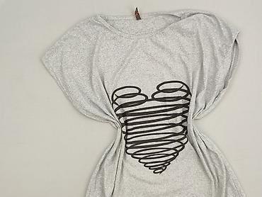 Szara damska bluzka z odkrytym jednym ramieniem (asymetryczny dekolt). Przód zdobi czarny nadruk dwóch serc. - Rozmiar: S (z metki) - Materiał: 100% poliester – miękki, lekko elastyczny, przyjemny...