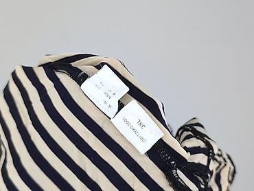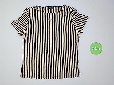 Damska bluzka w paski, rozmiar 3XL - Krój: luźny, prosty, z krótkim rękawkiem typu kimono - Dekolt: w kształcie litery V z przodu, okrągły z tyłu - Wzór: poziome, cienkie granatowe paski na białym...