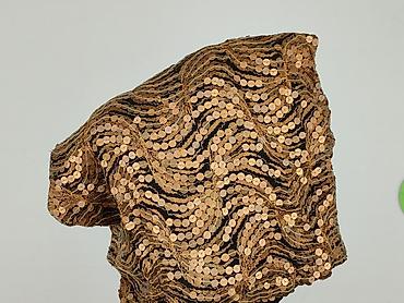 - Wykończenie: gęsto naszyte złote cekiny ułożone w falujący wzór na całej powierzchni