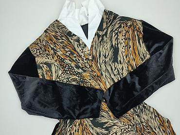 Bluzka damska z długim rękawem, rozmiar M. - Kolorystyka: czarny z turkusowo‑zielonym welurowym wzorem roślinnym/kamuflażowym - Materiał: 44% poliamid, 42% poliester, 14% elastan – elastyczna, lek...