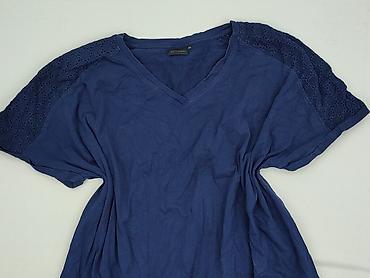 Damska bluzka z krótkim rękawem, granatowy melanż - Rozmiar: XL (z metki WOMEN XL) - Fason: luźny, z dekoltem w serek, lekko opadające rękawy - Ozdoby: dekoracyjne wstawki z haftem/taśmą w jasnonie...