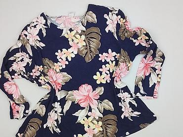 Bluzka damska w tropikalny wzór - Kolorystyka: granatowa baza, wielobarwne liście (pomarańcz, turkus, mięta, żółć, róż, biel). - Fason: luźny, swobodny krój z elastycznym ściągaczem na dole i przy...Rozmiar: