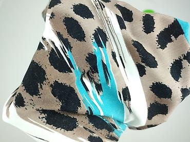 - Wzór: dynamiczne połączenie panterki z turkusowymi i białymi pociągnięciami pędzla