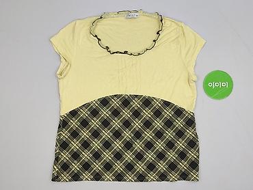 - Kolorystyka: góra w odcieniu pastelowej żółci; dół w skośnym łączeniu z dzianiną w czarno‑żółtą kratę