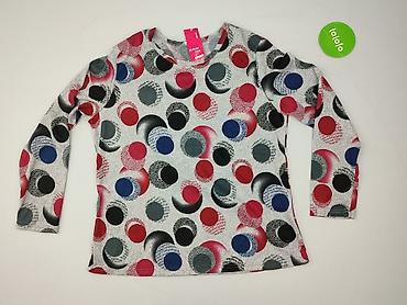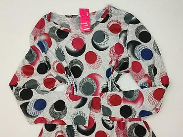 Bluzka damska z nadrukiem w duże koła - Fason: luźny, oversize, z obniżoną linią ramion - Rękaw: 3/4 - Dekolt: półokrągły - Długość: do bioder, delikatnie zaokrąglony dół (krótszy po bokach) - Wzó...