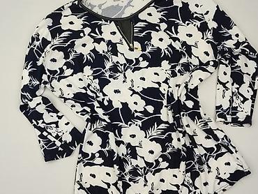 Bluzka damska Drelux Collection - Rozmiar z metki: 48 - Fason: luźny, prosty krój - Rękaw: 3/4 - Dekolt: okrągły z lekkim rozcięciem z przodu - Wzór: gęsty, biało‑granatowy motyw kwiatowo‑geometry...