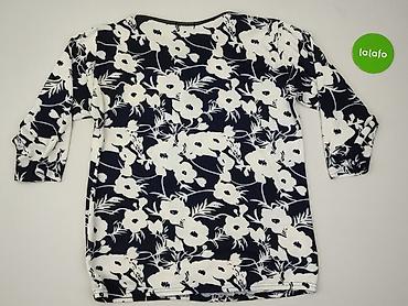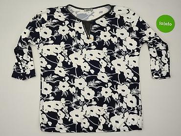 Bluzka damska z wzorem w falujące liście/łezki - Rozmiar z metki: 48 - Krój: luźny, lekko zaokrąglony dół - Rękawy: 3/4 z delikatnym marszczeniem przy mankiecie - Dekolt: okrągły z krótką listwą i...