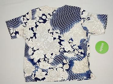 Bluzka damska z długim rękawem, rozmiar 48. - Wzór: bogaty, geometryczno‑kwiatowy print w odcieniach błękitu, granatu, różu, beżu i bieli - Krój: prosty, swobodny; okrągły dekolt; dół oraz mankiet...