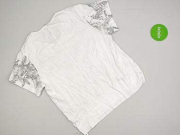 Bluzka damska z krótkim rękawem, wykonana we Włoszech. - Materiał: 95% wiskoza, 5% elastan – miękka, przewiewna tkanina z lekką elastycznością. - Kolor: biel z granatowym nadrukiem roślinnym/pais...